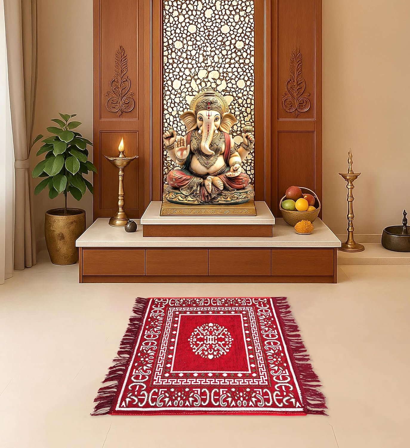 📏 Size: 62×62 cm | 24×24 Inches | Color: Red – Square-shaped prayer mat with perfect dimensions to suit all kinds of spiritual seating. Adds a vibrant touch to any pooja setup or sacred space.