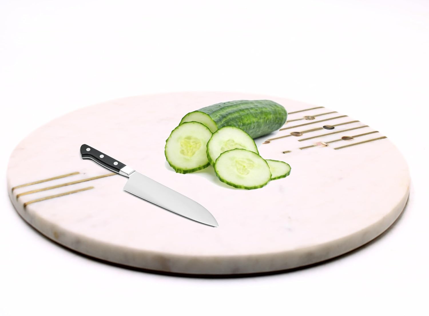 VR SOURCING White Marble Handmade Chopping Board with Brass Inlay | Elegant & Durable Kitchen Cutting Board | Multi-Purpose Use (14x9x0.60)