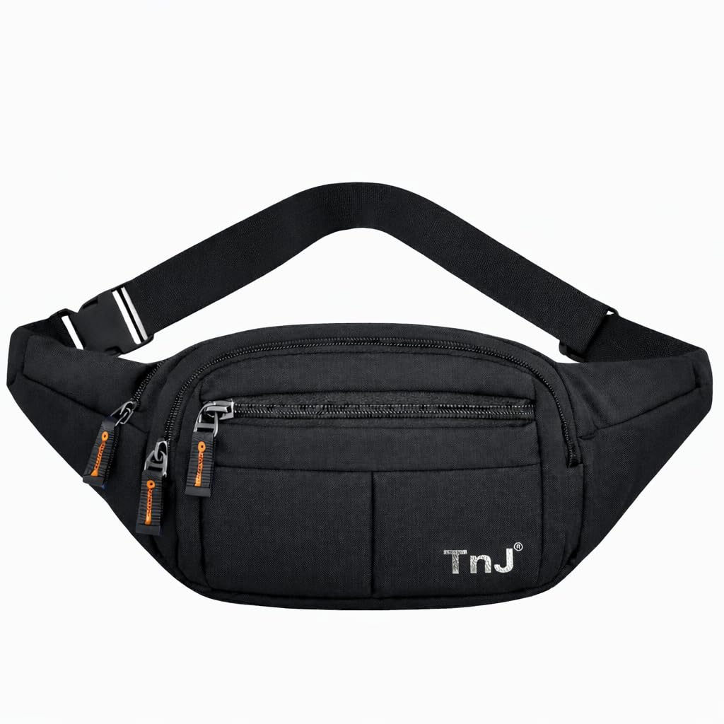 Waist Bag for Men & Women | Adjustable Waist Pouch with 3 Zipper Pockets | Travel Fanny Pack Belt Bag for Running, Hiking & Daily Use | Mobile, Passport & Money Holder | Lightweight Black