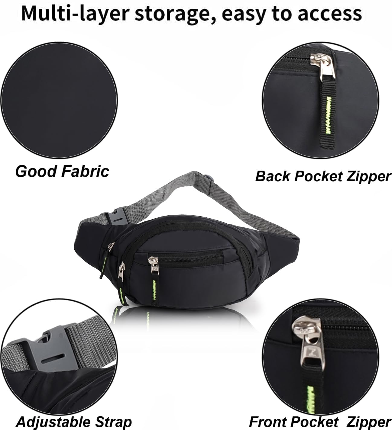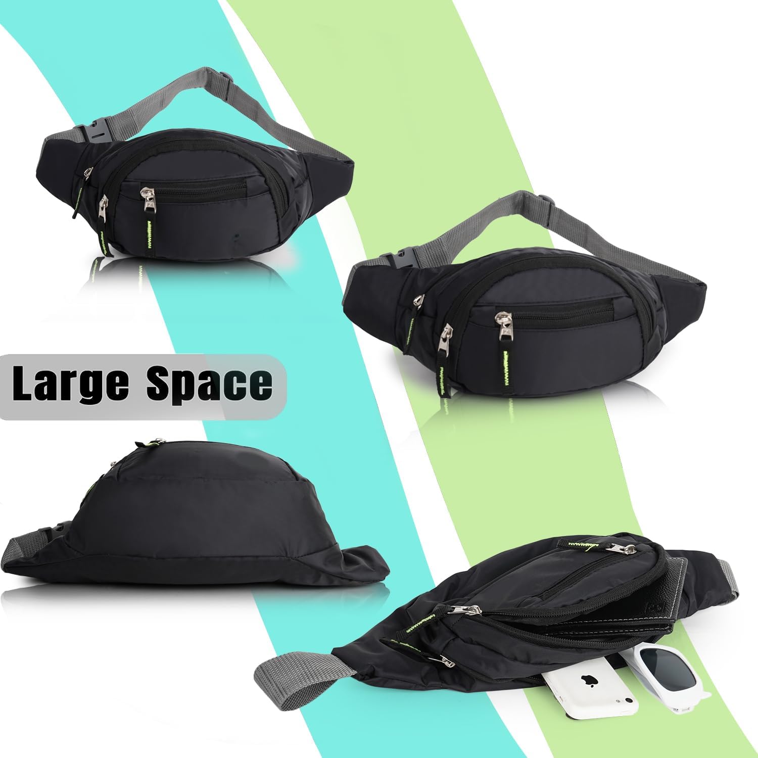 Waist Bags for Men & Women- Premium Stitching, Branded Zippers, Waterproof Pocket, RFID Safe- Large Fanny Pack for Hiking Travel,Cycling,Money Belt (Black)