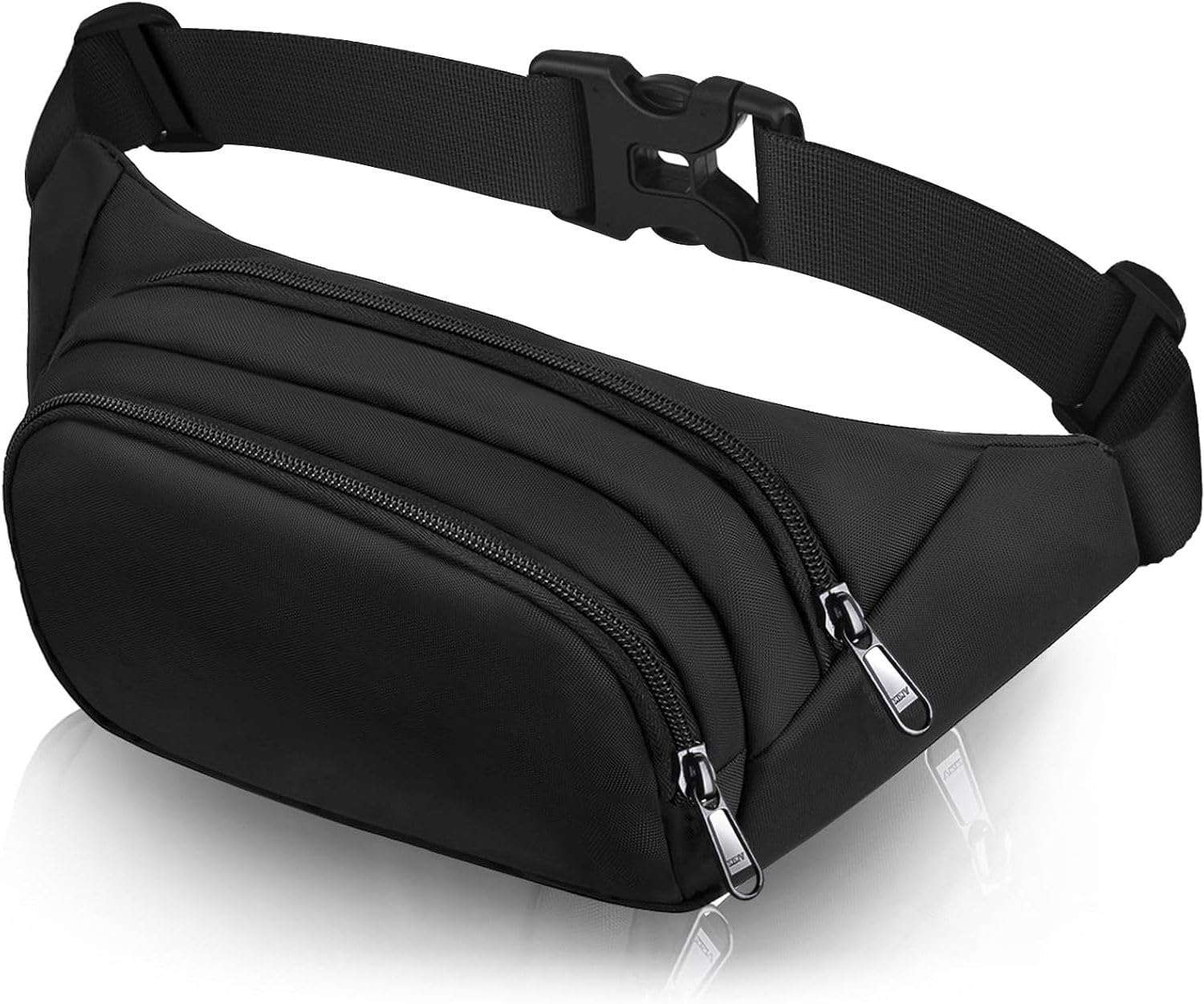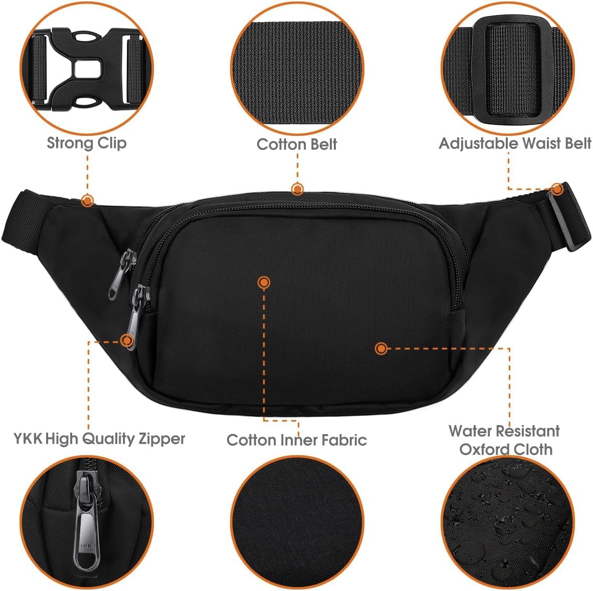 Waist Bags Pack Travel Handy Hiking Zip Pouch Document Money Phone Belt Sport Bag for Men and Women and Adult (Black)