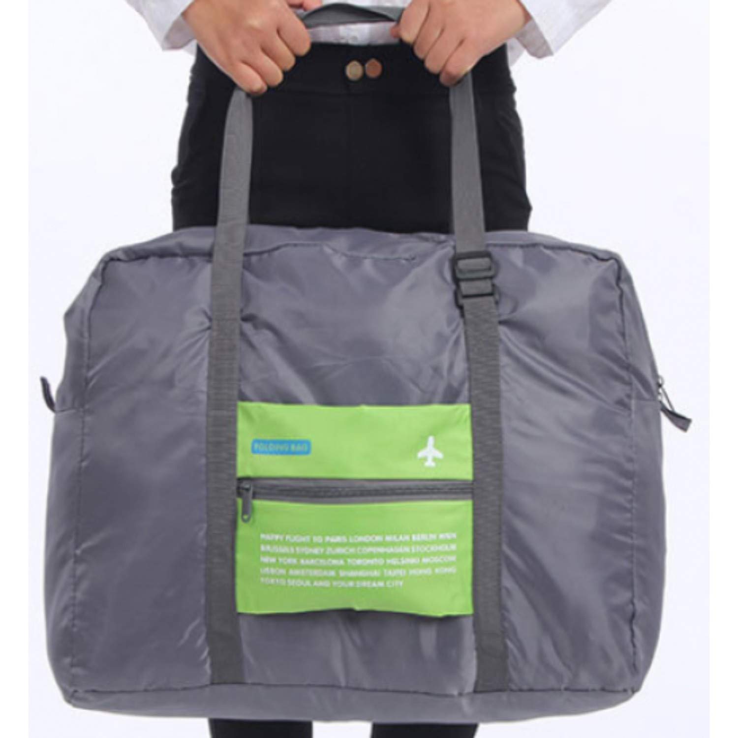 • Folding Bag rides comfortably on your shoulder or can hang on the pull handle of your luggage.