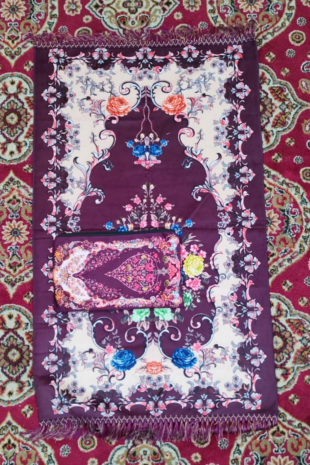 We designed Portable Safri Travel Prayer Mat made easy your prayer. Travel friendly, for perform Salah anywhere. You can carry this prayar mat in pocket/bag/hand bag/backpack easily. When you go college/ journey/travel etc. You may carry this prayer mat .Machine Washable, Anti Slip. Comes with a travel pouch. Thin and Light in weight.