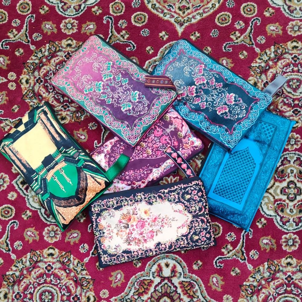 Weinbux Travel Prayer Mat | Premium Muslim Islamic Prayer Rug with Travel Bag | Pouch Packing Mat | Anti Skid Rug | Multicolor | Assorted