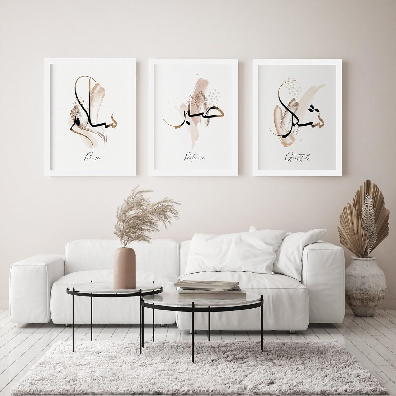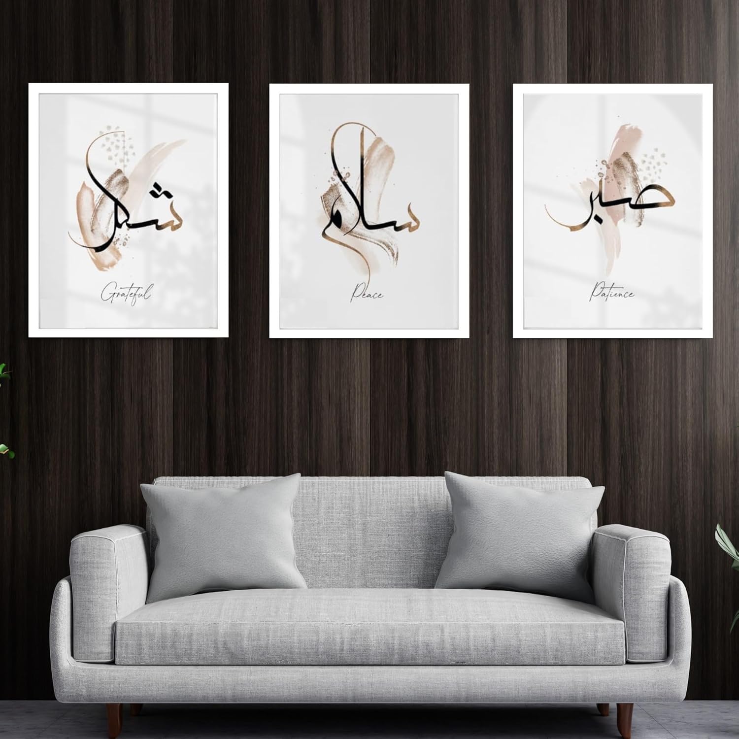 WHITE SPACE Synthetic|Islamic Wall Frames|Islamic Home Decor|Shukr Sabr Salam|3 Designs|(26 Cm X 36 Cm) Each|Glass On Top