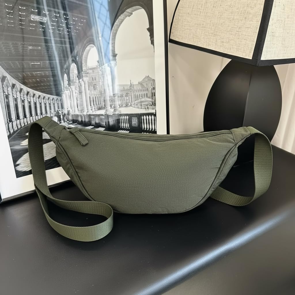 WILDHORN Crossbody Bag for Women & Men – Slim and Stylish Design, Luxury Nylon Fabric with Durable Zippers, Small Side Half-Moon Sling & Waist Bag, Unisex Chest Bag (Olive Green)