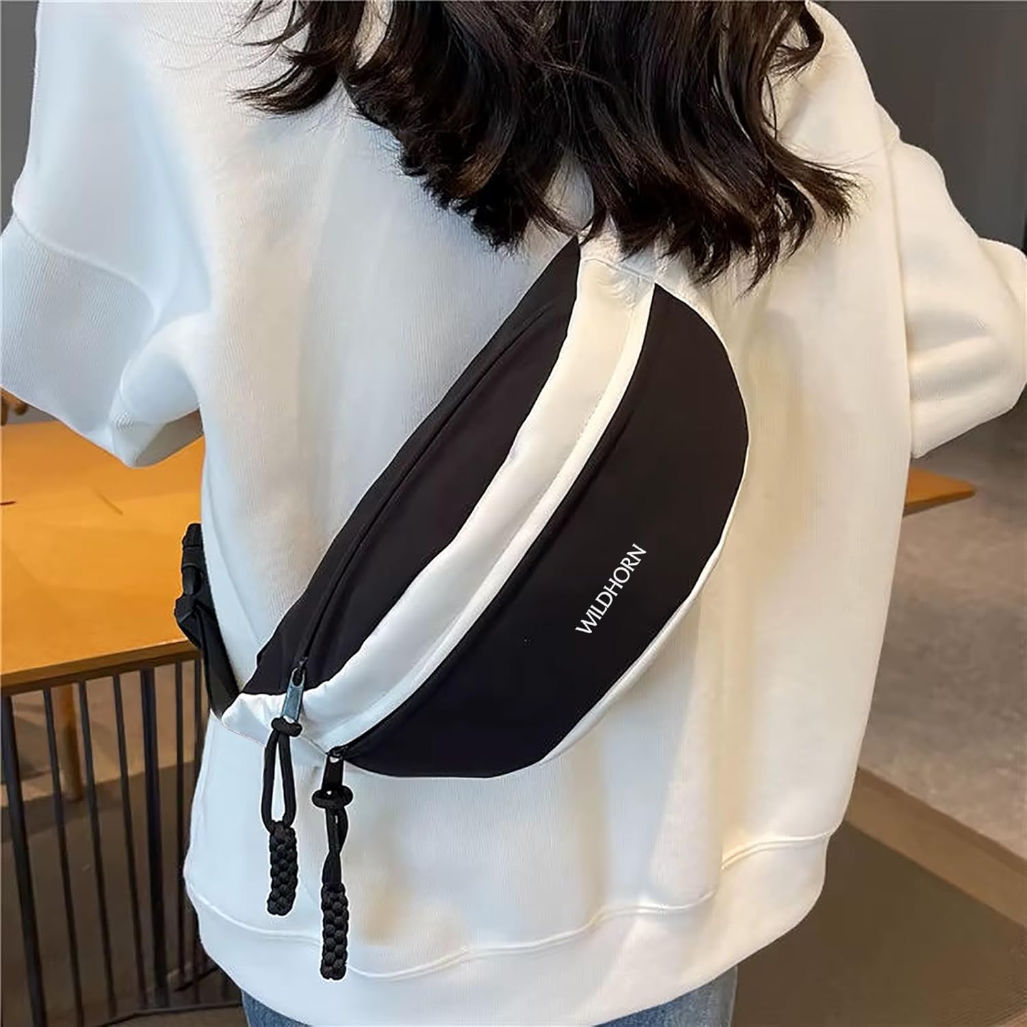 Stylish Everyday Look – Modern black & white color combination with minimal WILDHORN branding complements casual, travel, and streetwear outfits.