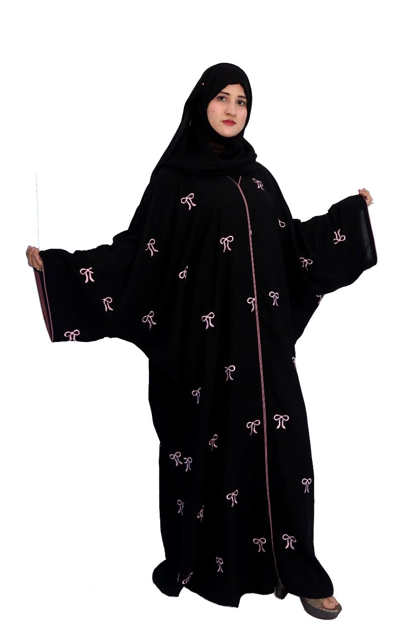 Be the first to review “Women’s Black Abaya with Pink Bow Pattern, Full Length Traditional Islamic Burqa, Up to 78 Inches round Chest and 56 inches long NO DUPATTA ABAYA.”