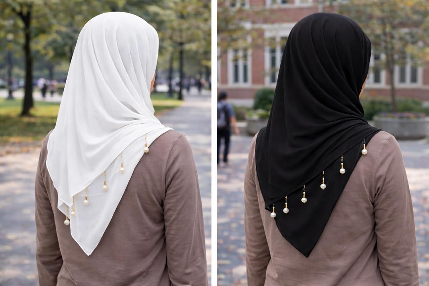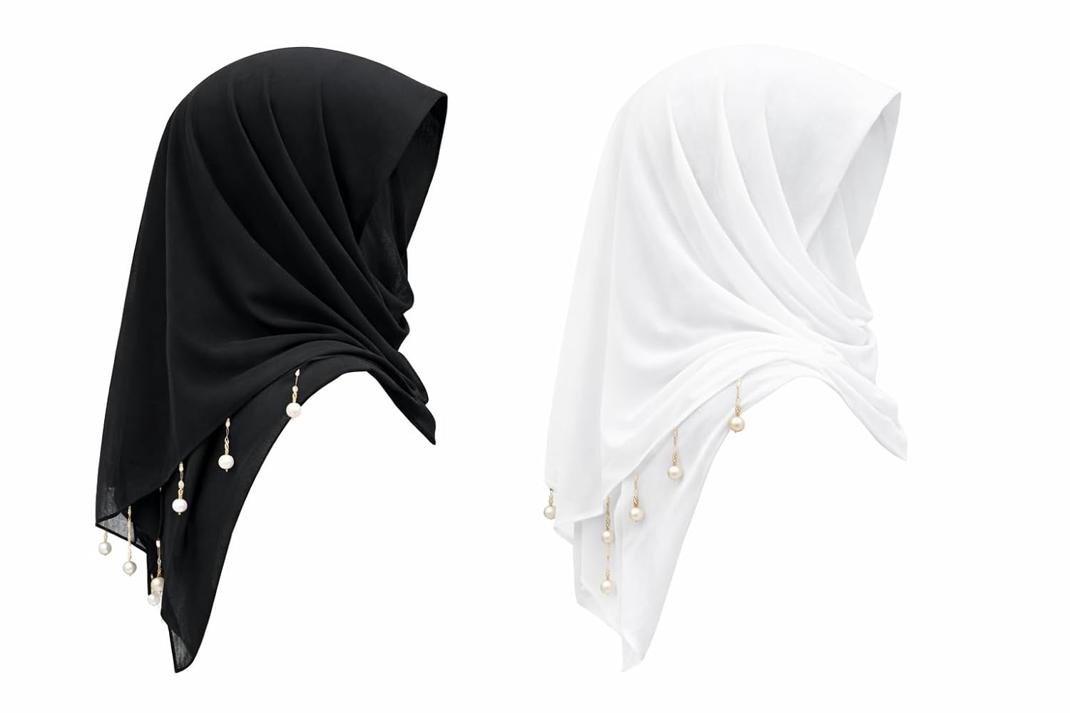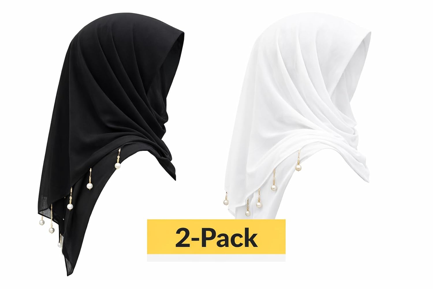 Women’s Pearl & Chain Embellished Hijab Dupatta | Pack of 2 (1 Black &1 White) | Lightweight Chiffon Scarf | Modern Contemporary Design