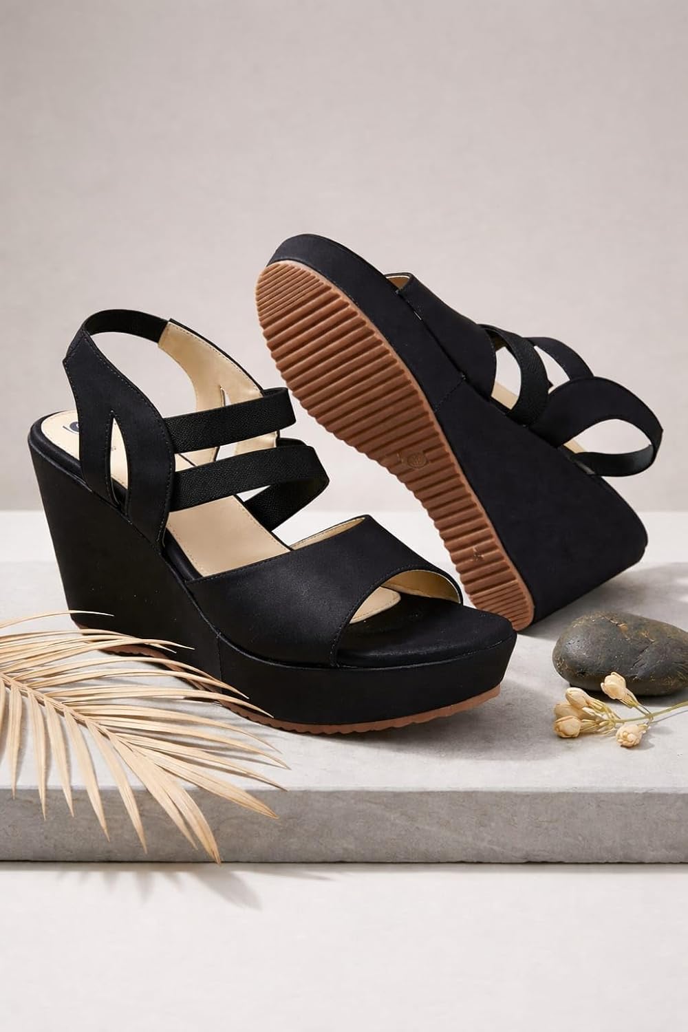 Women’s Wedge Sandals | Elastic Strap, Open Toe, Low Heel | Elegant Comfortable Heels for Party, Office & Casual Wear | Fashion Footwear for Girls & Women,