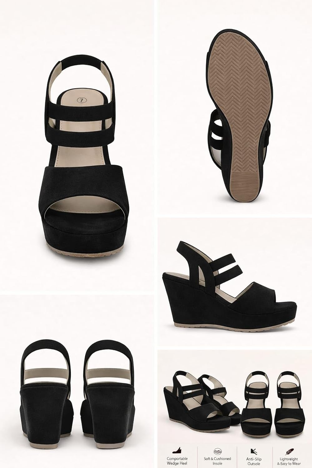 Be the first to review “Women’s Wedge Sandals | Elastic Strap, Open Toe, Low Heel | Elegant Comfortable Heels for Party, Office & Casual Wear | Fashion Footwear for Girls & Women,”