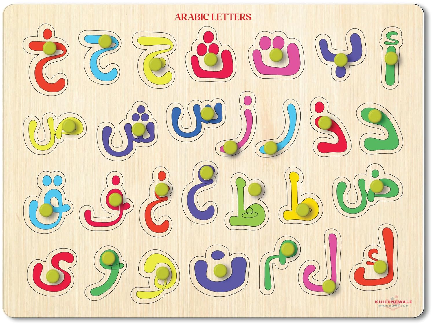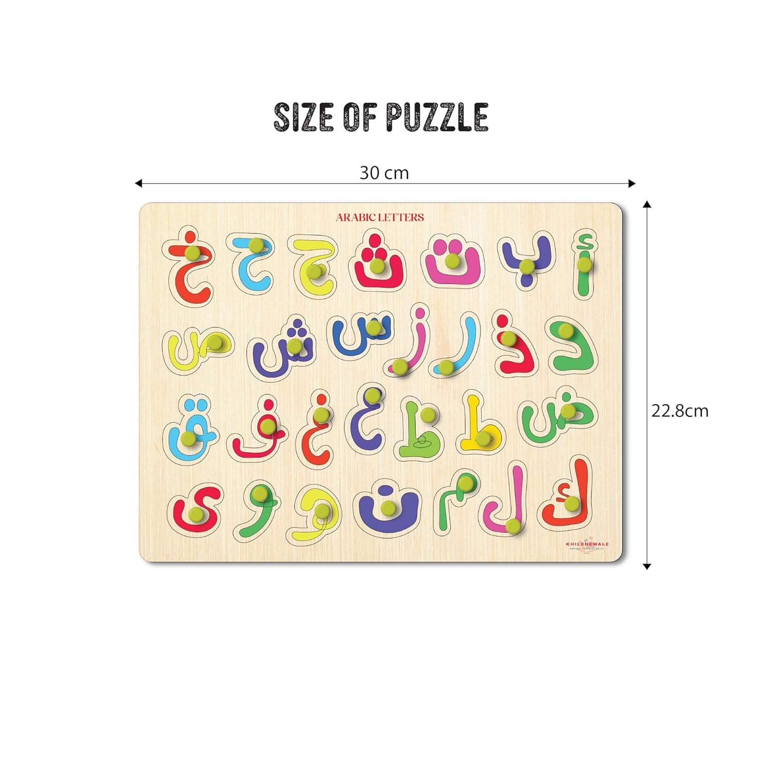 Wooden Arabic Language Knob Puzzle for Children 3+ | Learning Board Puzzle 9×12 Inches | Montessori Toy for Kids (Arabic Letter)