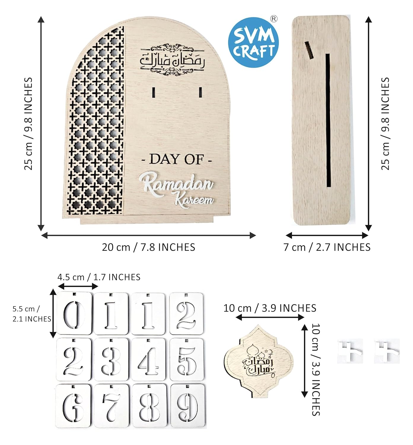 Beautiful mdf Ramadan Calendar Decor: Elevate your Ramadan celebrations with this svm craft Wooden Ramadan Calendar. Featuring a charming Islamic design, it’s perfect for Ramadan Mubarak, Eid, and festive home decor.