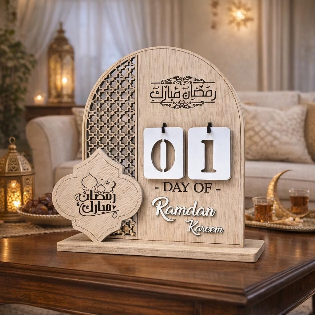 Perfect Ramadan and Eid Decor: Use this beautifully crafted wooden calendar as a centerpiece or table decor for your Ramadan and Eid celebrations. It brings a blend of tradition and elegance to your festive setting.