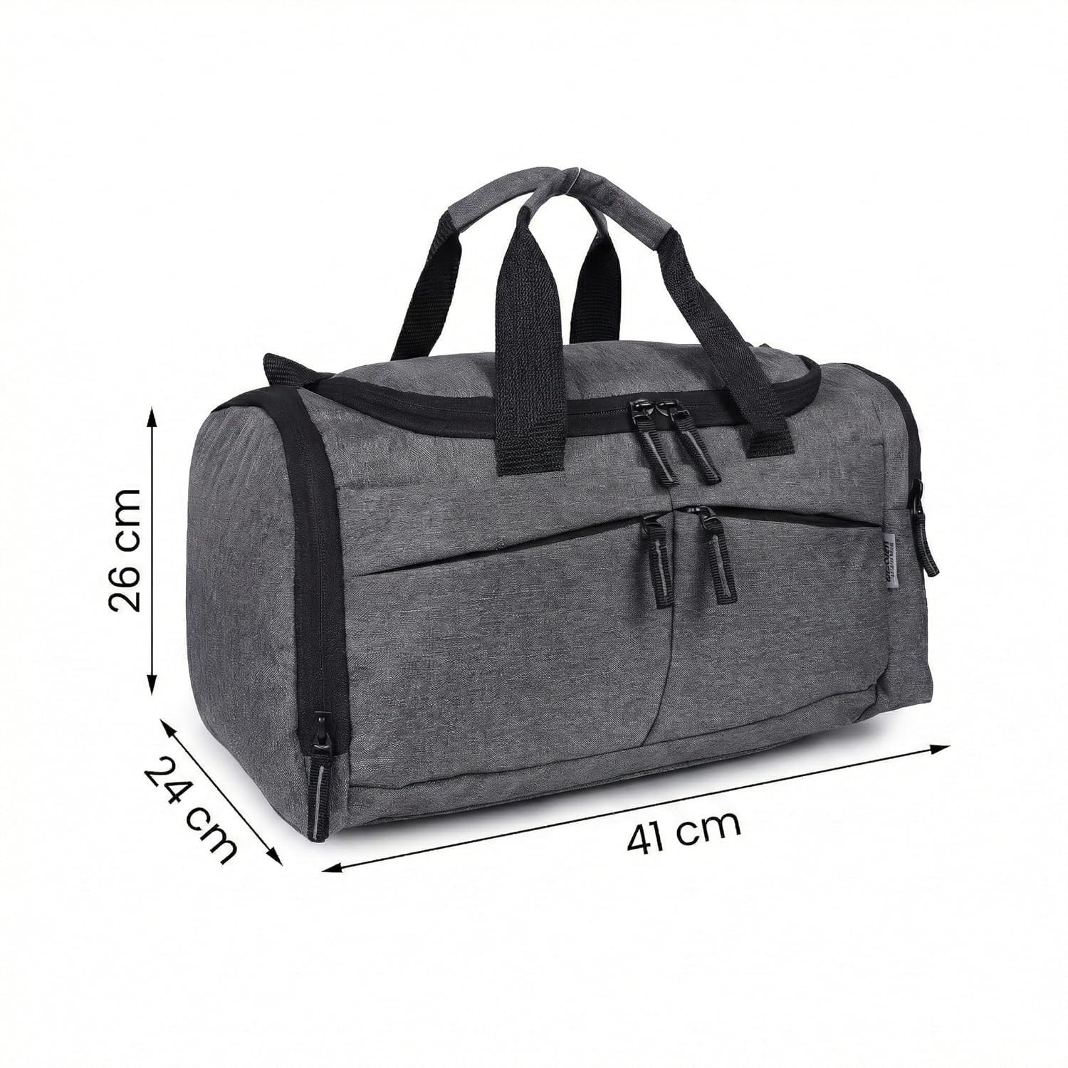 The bag size is 41 x 26 x 24 cm, offering enough space for clothes, gym gear, travel essentials, and accessories. Perfect for weekend trips, sports training, and daily use.