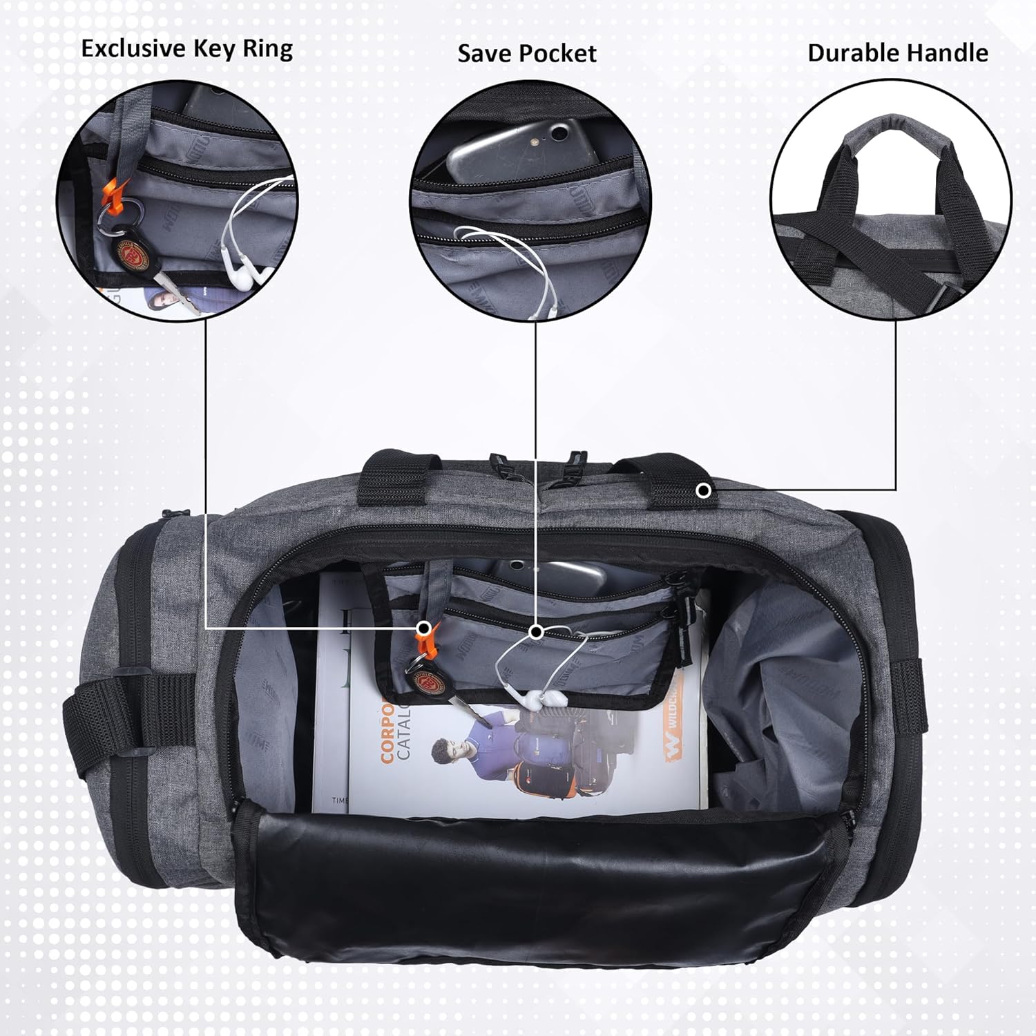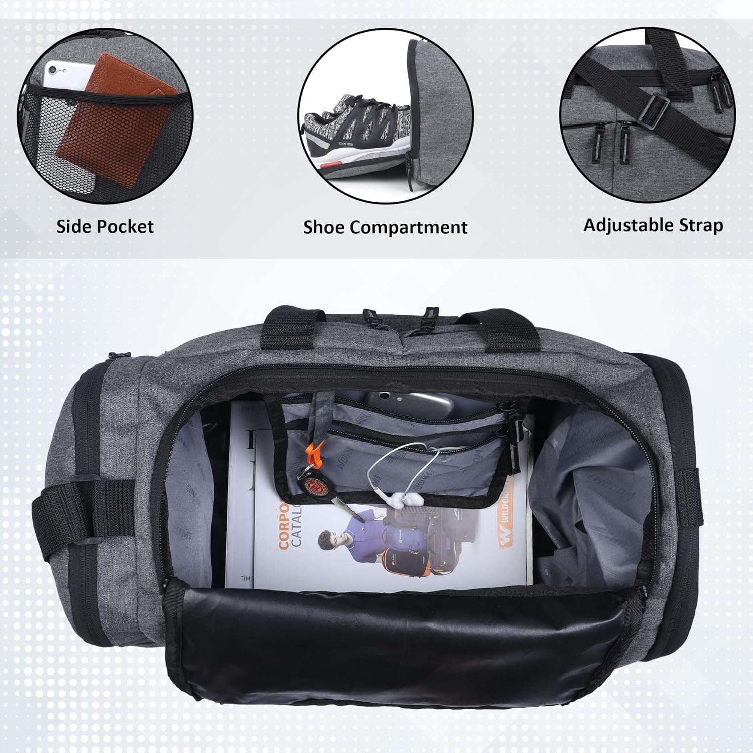 Yes, this multi-purpose duffel bag comes with inner storage pockets, quick-access side pocket, and key holder, helping you keep your phone, wallet, and accessories organized.