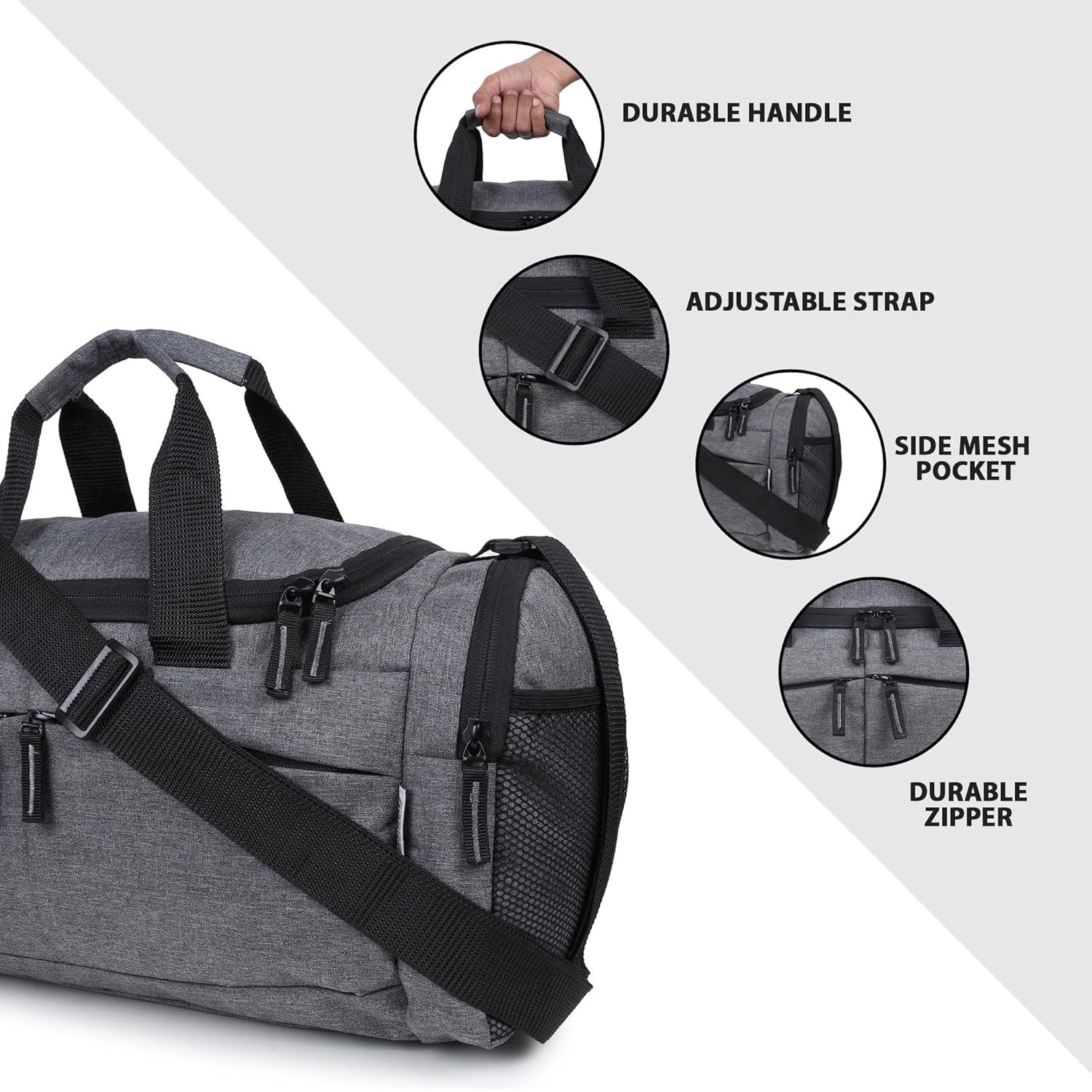 Wooum Gym Duffle Bag with Shoe Compartment for Men & Women | Travel Bag, Weekender & Sports Bag | Lightweight Small Travel Duffle Bag with Adjustable Strap | 41x26x24 cm | 1 Year Warranty