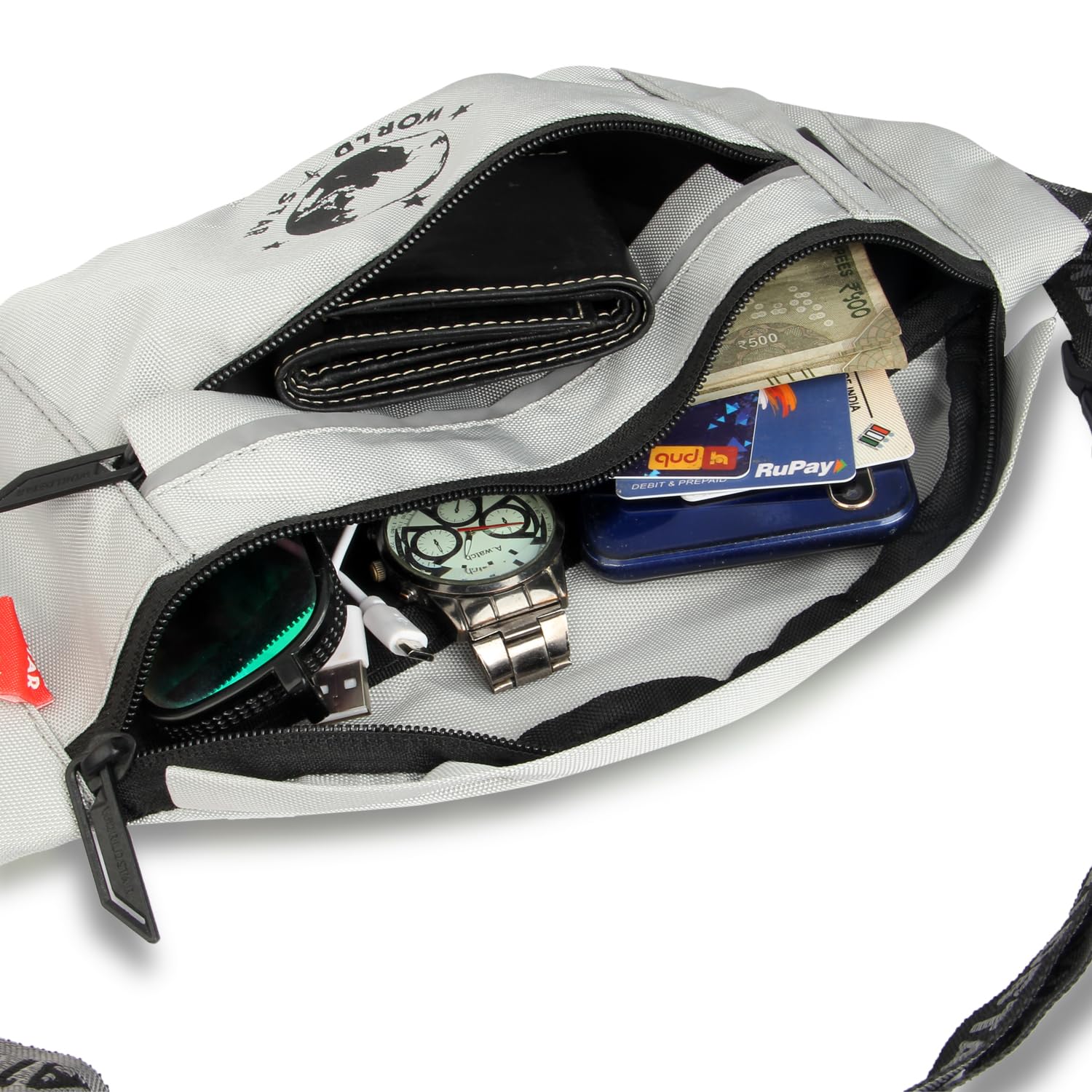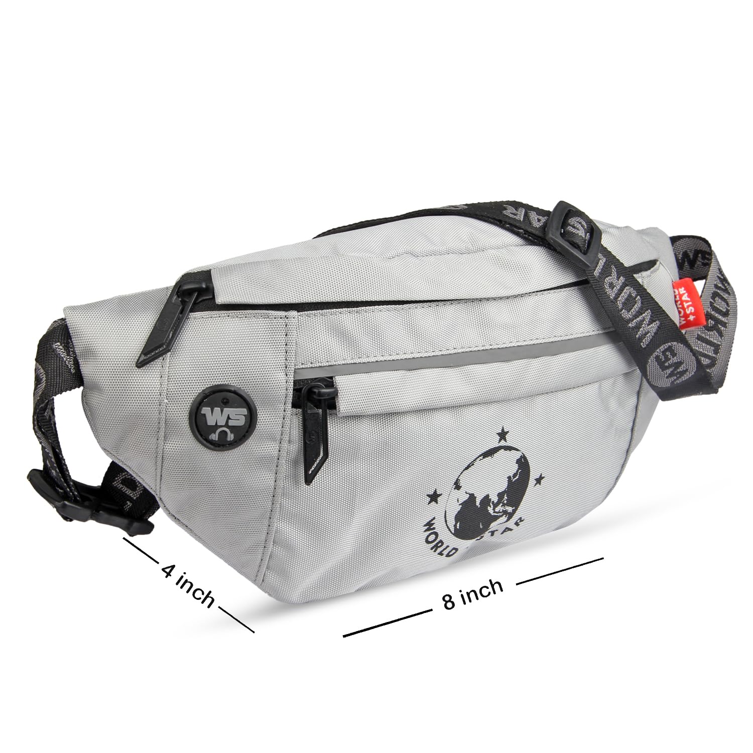 WORLD STAR Waist Bag for Men & Women | Fanny Pack for Men | Trendy Mobile Waist Pouch Pocket Bag for Girls and Boys | Waterproof Hip and Side Bags for Outdoor Hiking Travel (Light Grey)