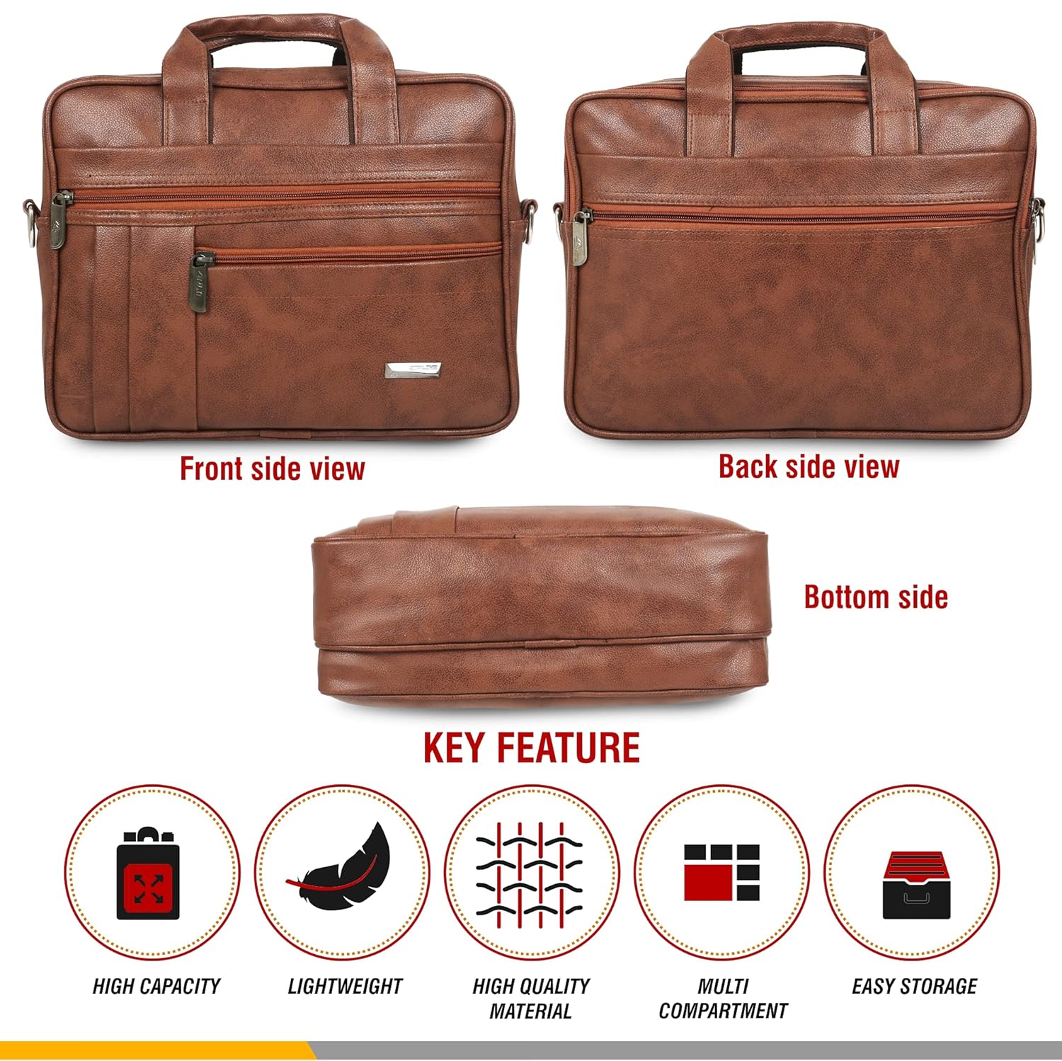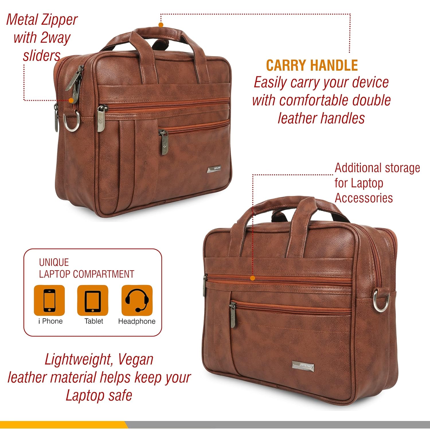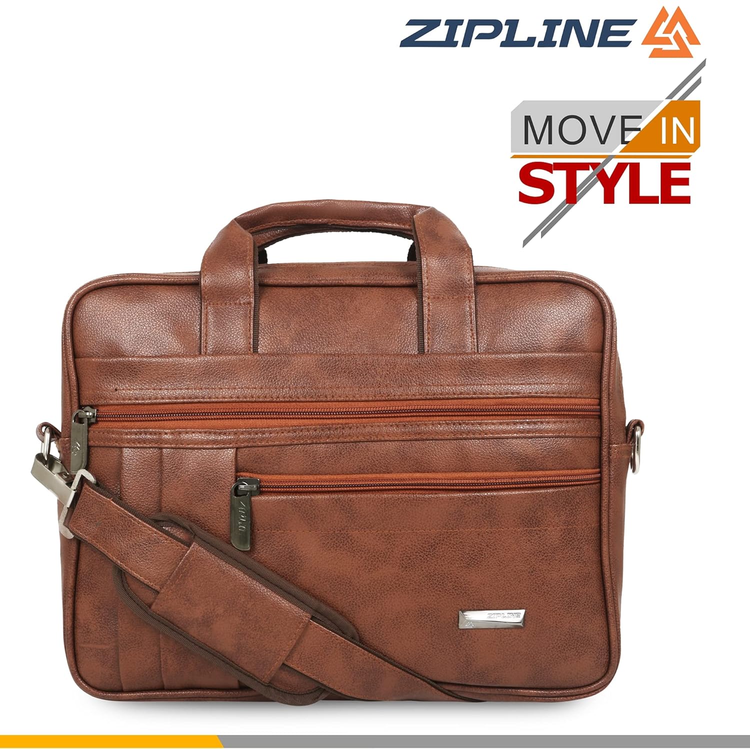 Zipline Laptop bags for men office use | Faux Leather SMALL laptop bag for Man – Fits 13 inch Laptop/Macbook/Macbook Pro/Tablet Messenger Bags For Mens (1-Tan Bag)