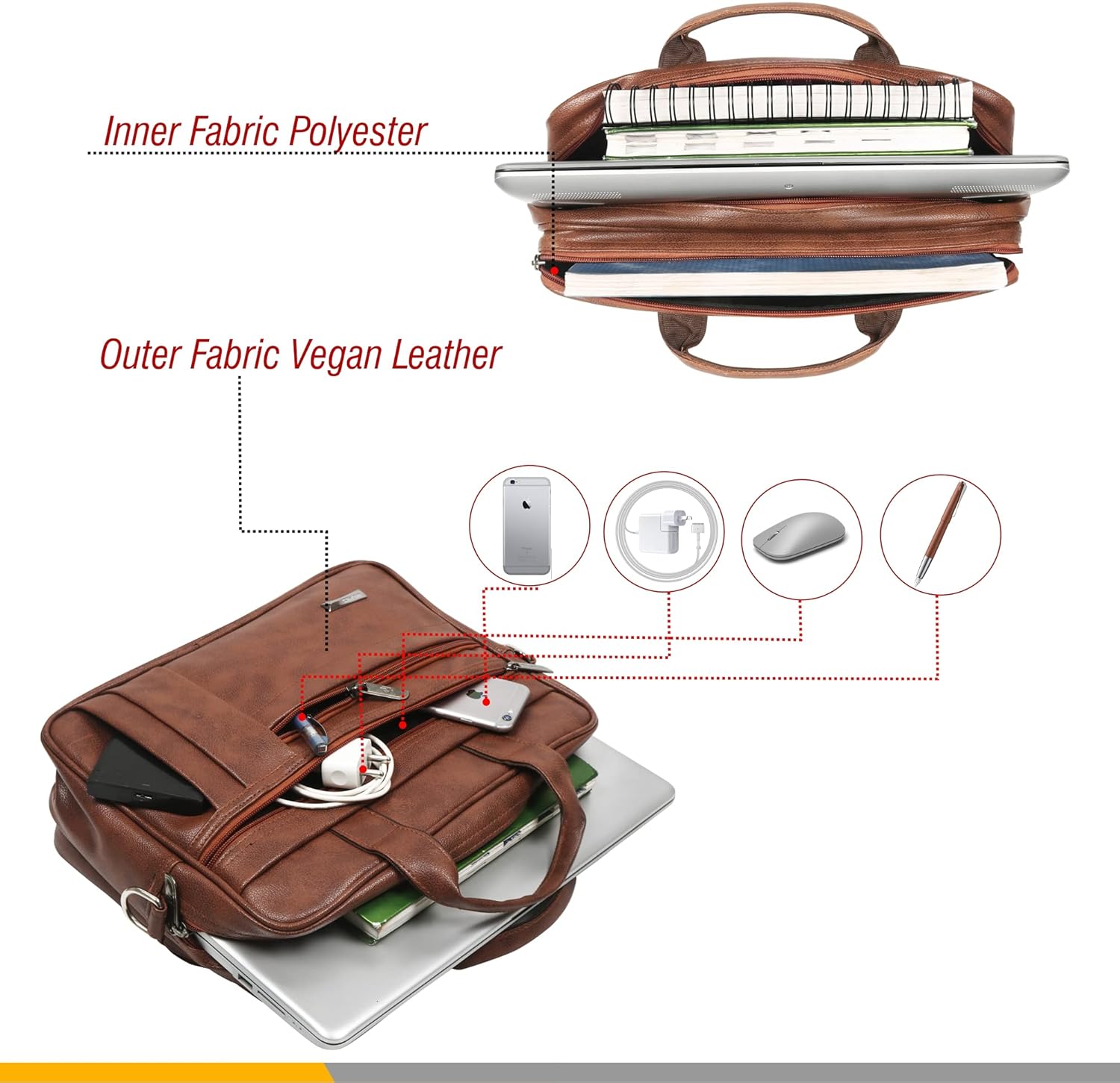 MATERIAL – We use Highest Quality of Leatherette Material which is Durable, Long Lasting and tested to ensure they don’t peel off in just few months. The Vegan Leather messenger laptop bags for men is also water resistant. Inner fabric lining ensured to have a soft touch feel. We use quality zips and acessories that have a long life.
