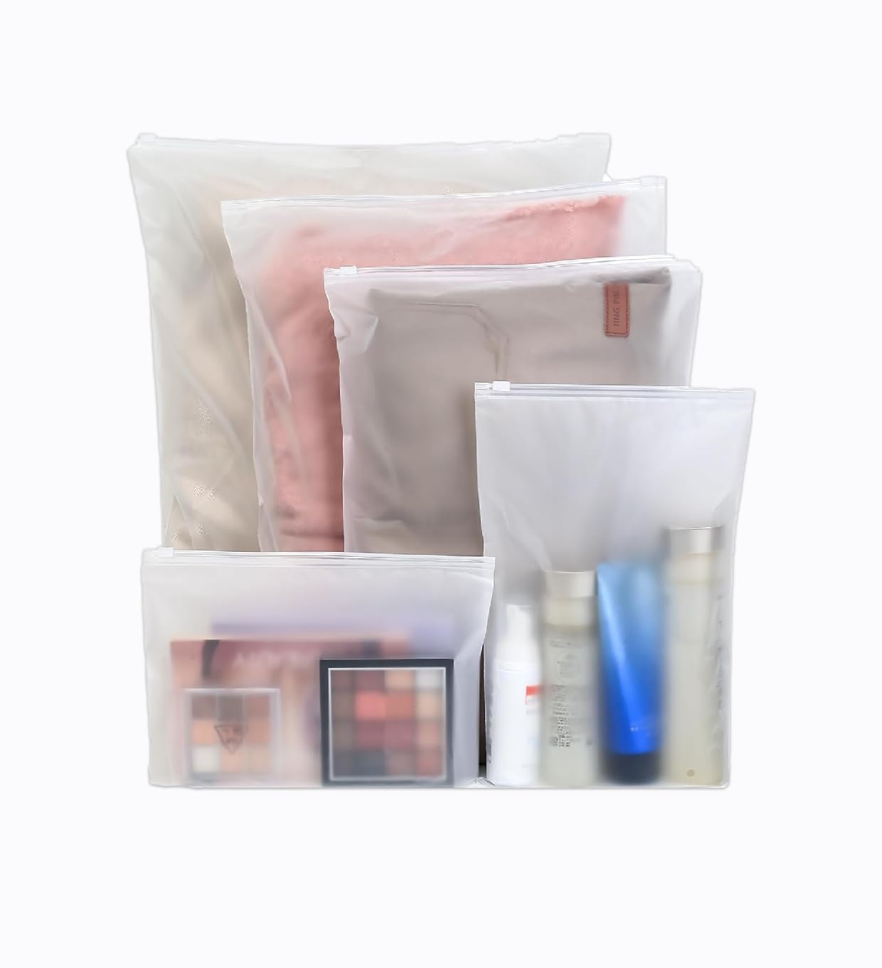 SPECIFICATION : ⟡ MATERIAL- Polyethylene ⟡ COLOR- Frosted ⟡ SIZE- Extra Large – 35cm x 40cm, Large- 30cm x 35cm, MEDIUM- 25cm x 30cm, SMALL- 20cm x 25cm, EXTRA SMALL- 23cm x 10cm ⟡ SHAPE- Rectangular ⟡ SPECIAL FEATURE- Portable, Lightweight, breathable, Zipper, Air Ventilate Hole ⟡ USES- Toys, Clothing, Footwear, Jewellery, Electronic Accessory ⟡ MICRON SIZE- 13 ⟡ CLOSURE TYPE- Zipper(Silder Lock) ⟡ No. OF ITEM- 1pcs of all size bags